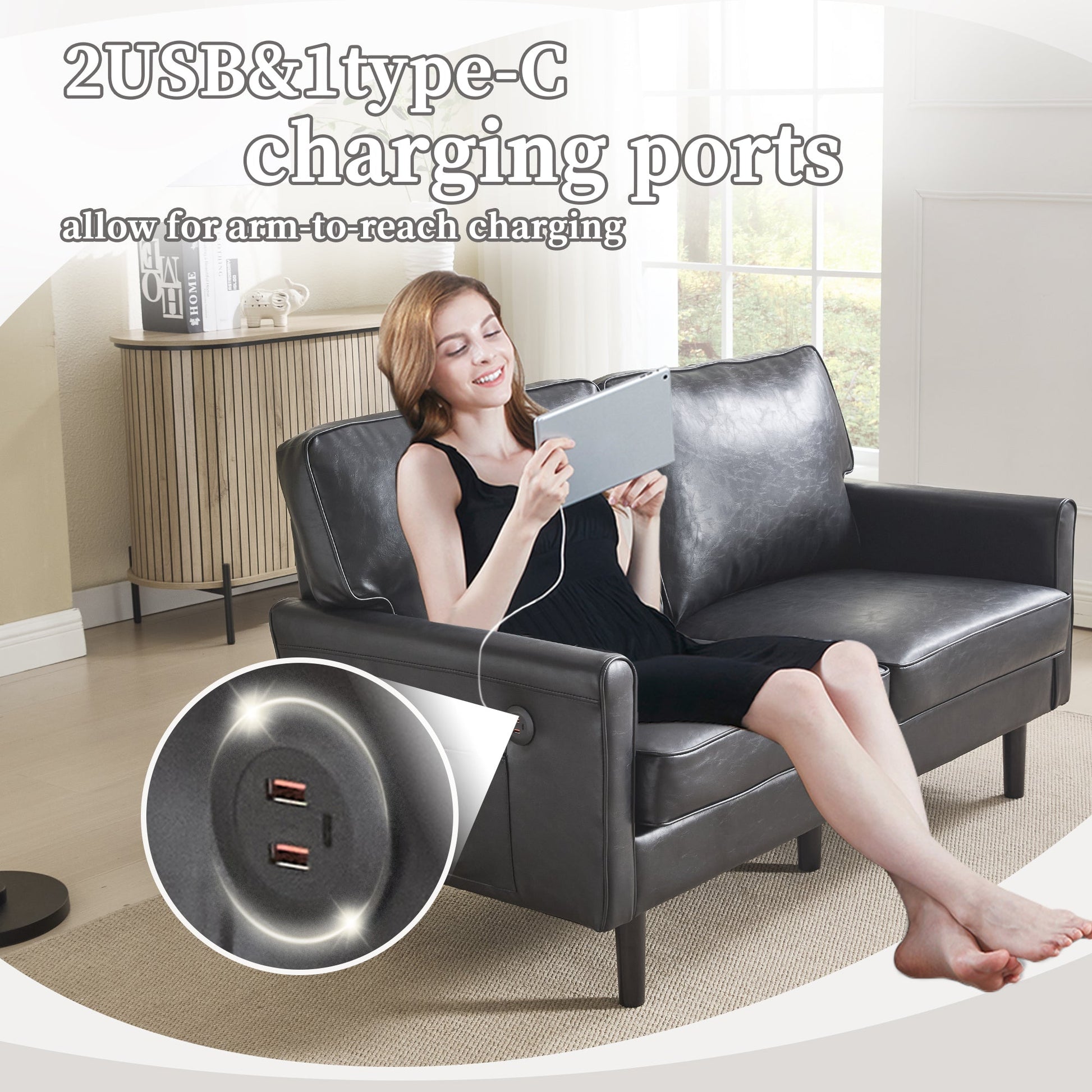 Multifunctional Sofa & Wood Legs: This loveseat is equipped with USB & Type C ports, easily charge your phone at work or at leisure. Our couches features sturdy structure, strong solid wood legs ensures stability and easily support up to 550 lbs.