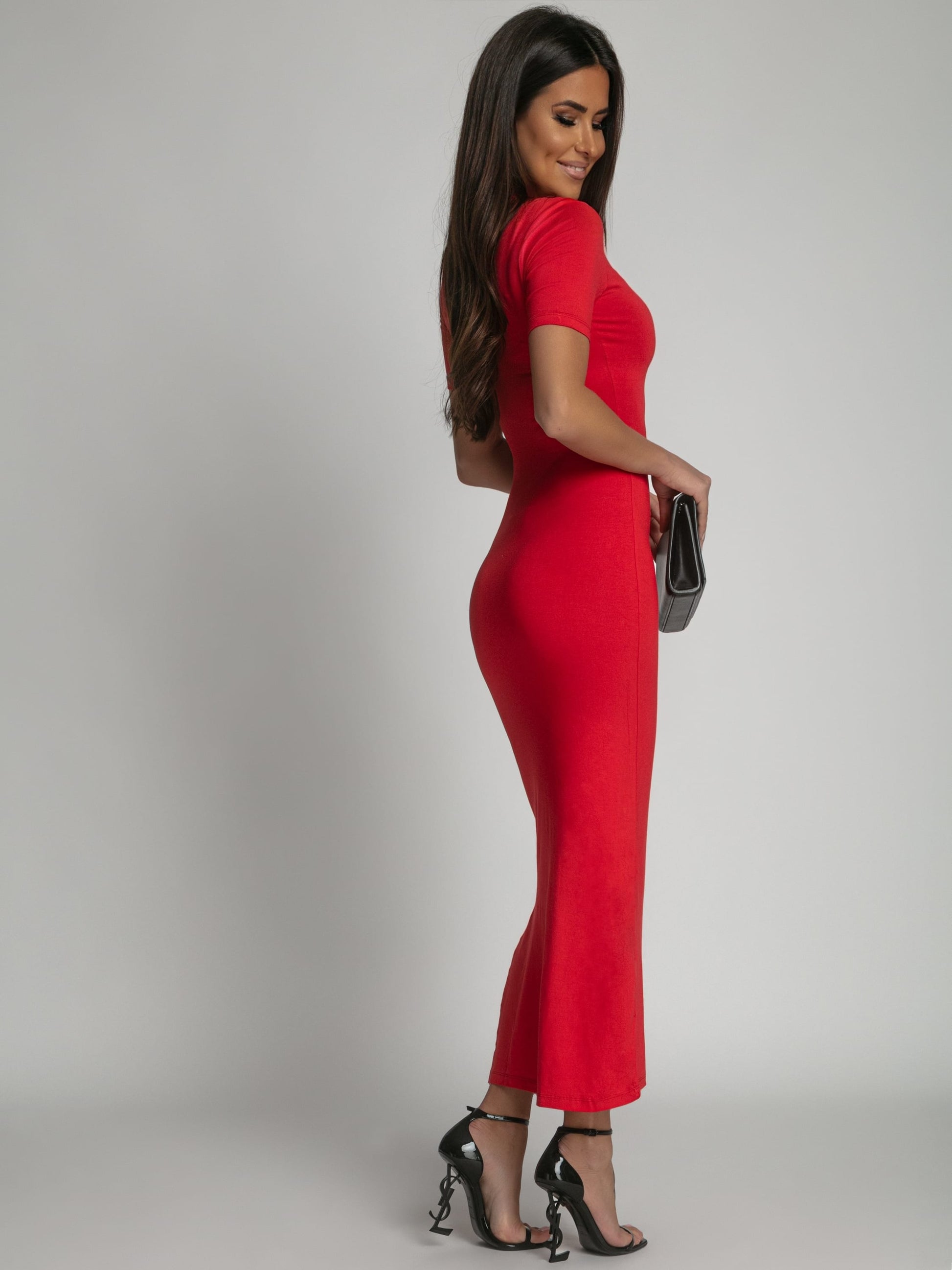 The red midi dress perfectly complements the female figure, emphasizing its beauty. Wear it whenever you want to create a chic and timeless look. This minimalist style will never disappoint you!
