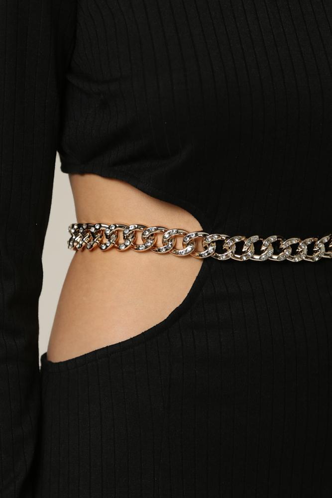 A ribbed maxi dress featuring high-neck. Cutout waist with rhinestone encrusted chain belt that adjusts. Long sleeves. Front leg slit. Zipper back closure. Finished hem.75% polyester 25% spandexThis dress is designed with love and passion by Rose Paulino. Our factory provides great workmanship to give you the perfect outfit. All our designs are made to order. If our size charts standard sizes aren’t a good fit for you. Make sure to drop your fitting requests in the additional notes box when checking out. Our designs are one of a kind with uniquely crafted prints and pattern. They are durable and of good breathable quality. If your order isn't what you expected, feel free to contact our Customer service team. We'll do our best to make you fully satisfied.Estimated shipping time is 7 -10 days.Please Note: Our products are made to order.