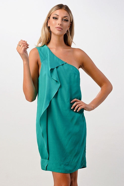 Increase quantity for One-Shoulder Ruffle Detail Mini Dress
