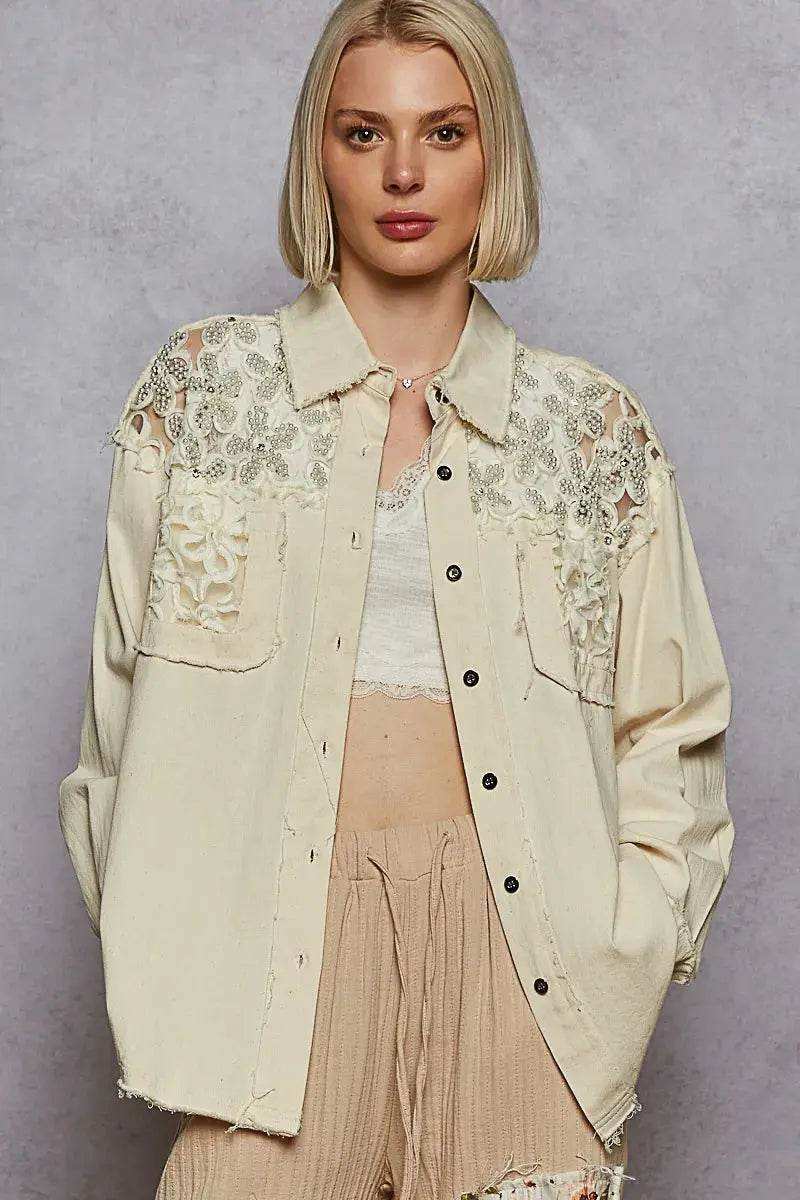 This vintage-inspired oversized blouse features exquisite embroidered floral details that add a bohemian charm to any outfit. Made from lightweight, breathable fabric in a soft cream color, this shirt offers ultimate comfort with its relaxed fit and classic button-up design. The decorative embroidery work showcases intricate craftsmanship, while the long sleeves with cuffed details provide a structured yet casual look. Perfect for layering or wearing alone, this versatile piece combines vintage aesthetics with modern comfort, making it ideal for both casual outings and styled looks.