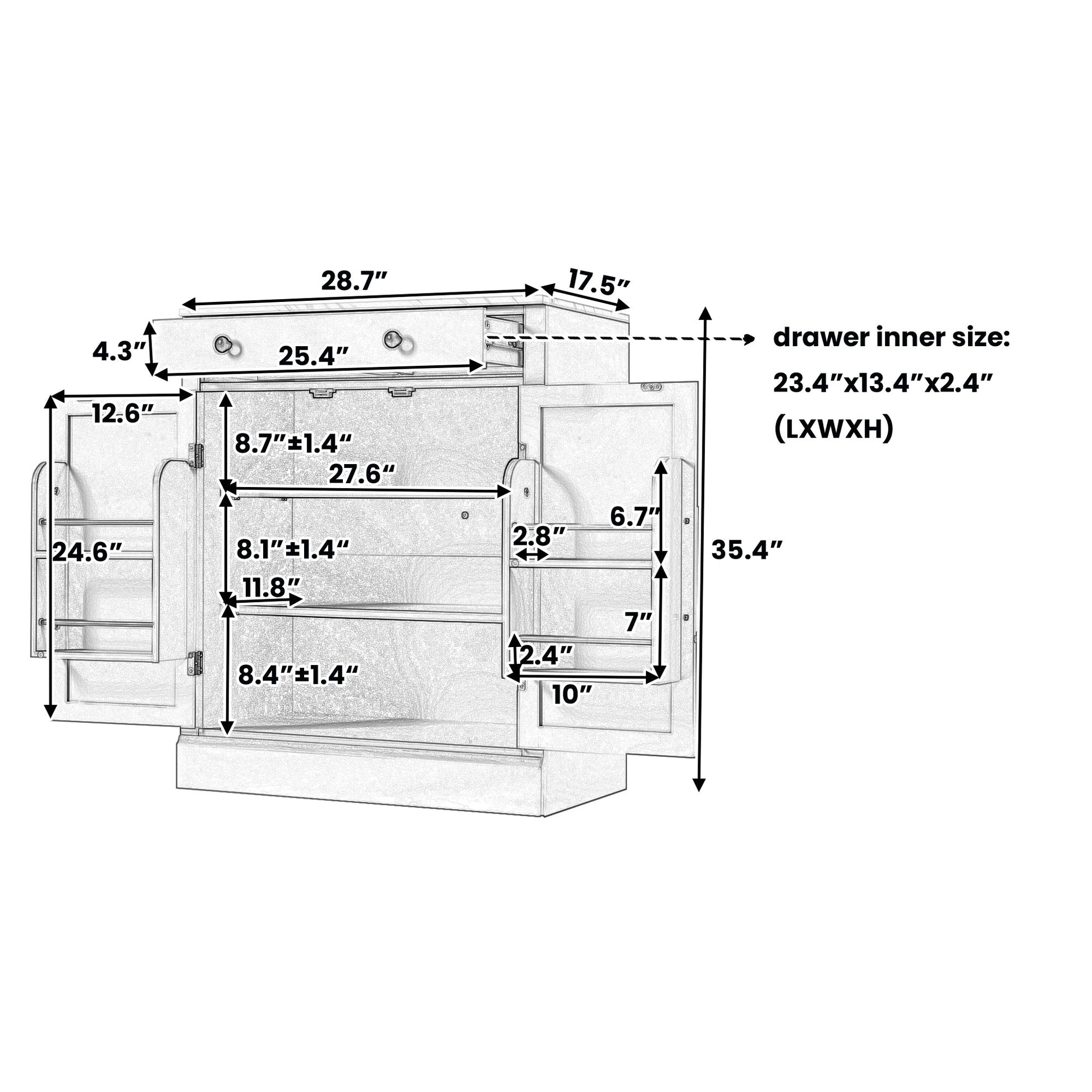 [Ample Storage and Organization]Maximize your storage space with a well-thought-out design featuring 2 adjustable shelves and 2 door shelves for versatile organization. The spacious pull-out drawer offers a convenient spot for utensils, napkins, or small accessories, ensuring a clutter-free and tidy kitchen. Whether storing dishes, pantry essentials, or coffee supplies, this cabinet keeps everything within easy reach while maintaining a clean, organized appearance.