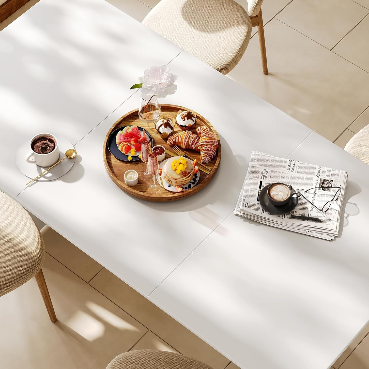 【Fashionable Dining Table】: This table with an elegantly rounded edge design not only provides an aesthetically appealing look but also enhances safety for those seated around the table. This white dining table is perfectly suited to households with active children or pets.