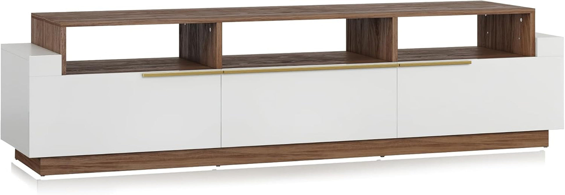 Elevate your living space with our Stylish 70" Modern TV Stand, designed to blend seamlessly with a variety of decor themes. This chic credenza features a contemporary aesthetic with mixed color accents and golden alloy handles, making it the perfect centerpiece for your entertainment area.
