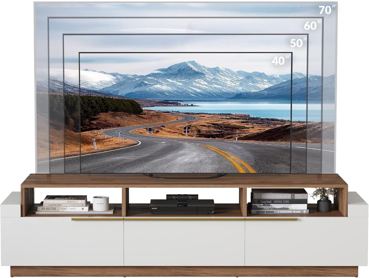 • Spacious Top: 62-inch tabletop with an 18 mm thick panel, suitable for TVs up to 70 inches.