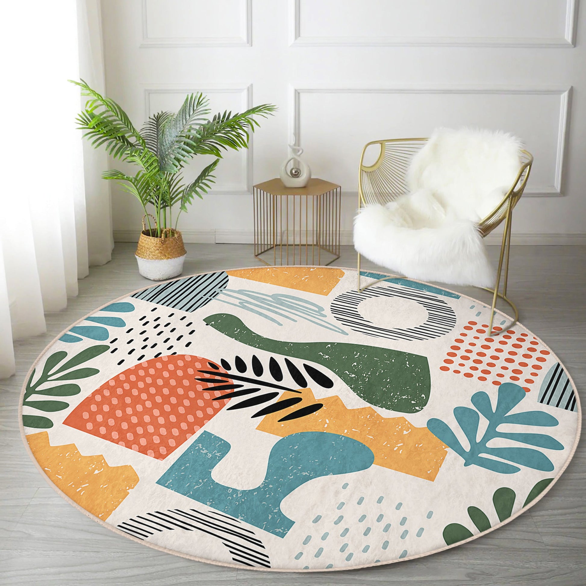 Abstract Circle Carpet, Boho Round Rug, Bohemian Room Decorative Floor Carpet, Non Slip Area Rug