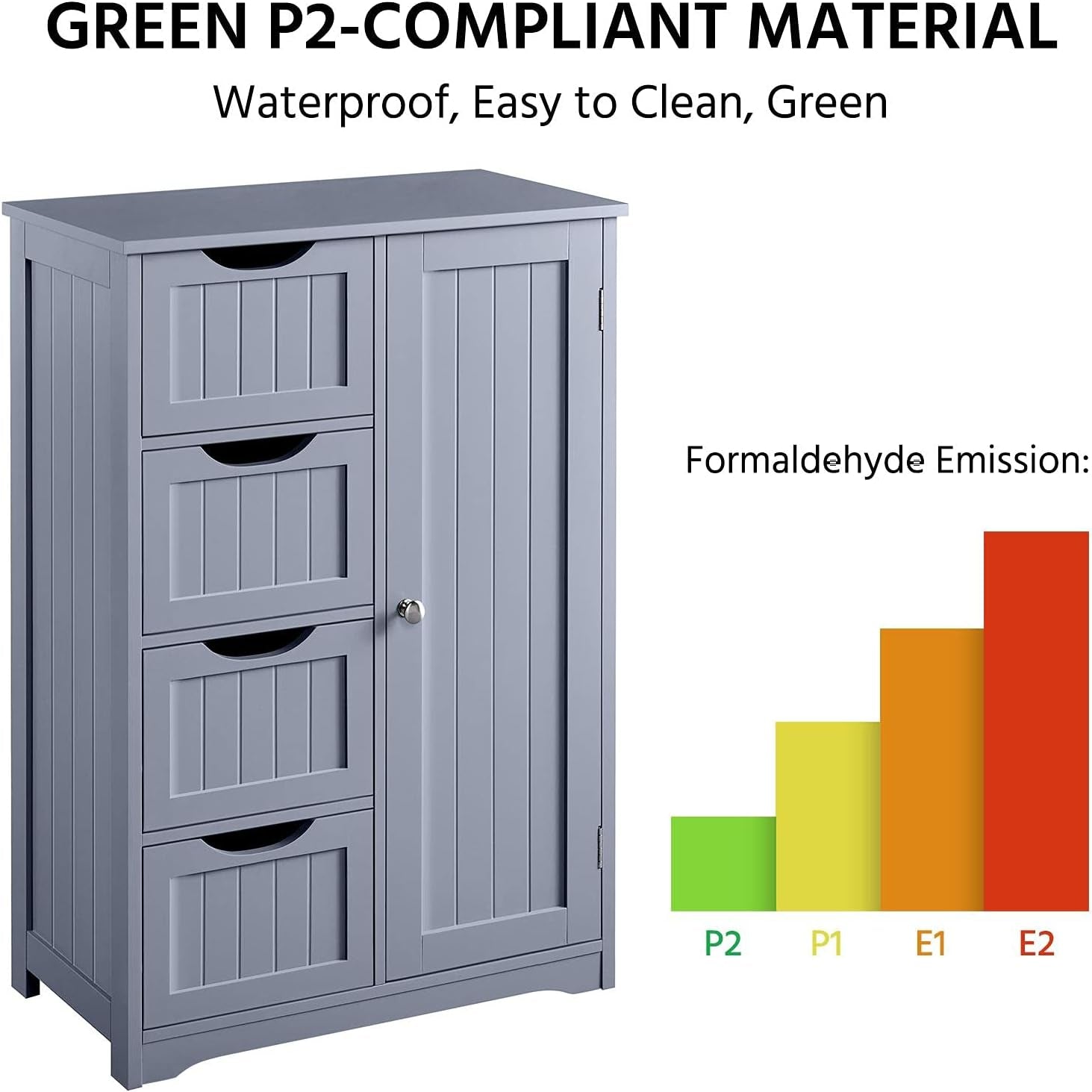 If extra toiletries and spare towels are piled up in your bathroom ensemble, having a spacious storage cabinet can help you hide all the clutter behind the door and out of sight. This 22” L x 12” W x 32’’ H cabinet has 4 no-handle sliding drawers and 1 roomy cupboard with an adjustable shelf. Once you have it, the storage space in your bathroom, sitting room will be instantly expanded. Its clean-lined design with slatted paneling works well in a variety of aesthetics.