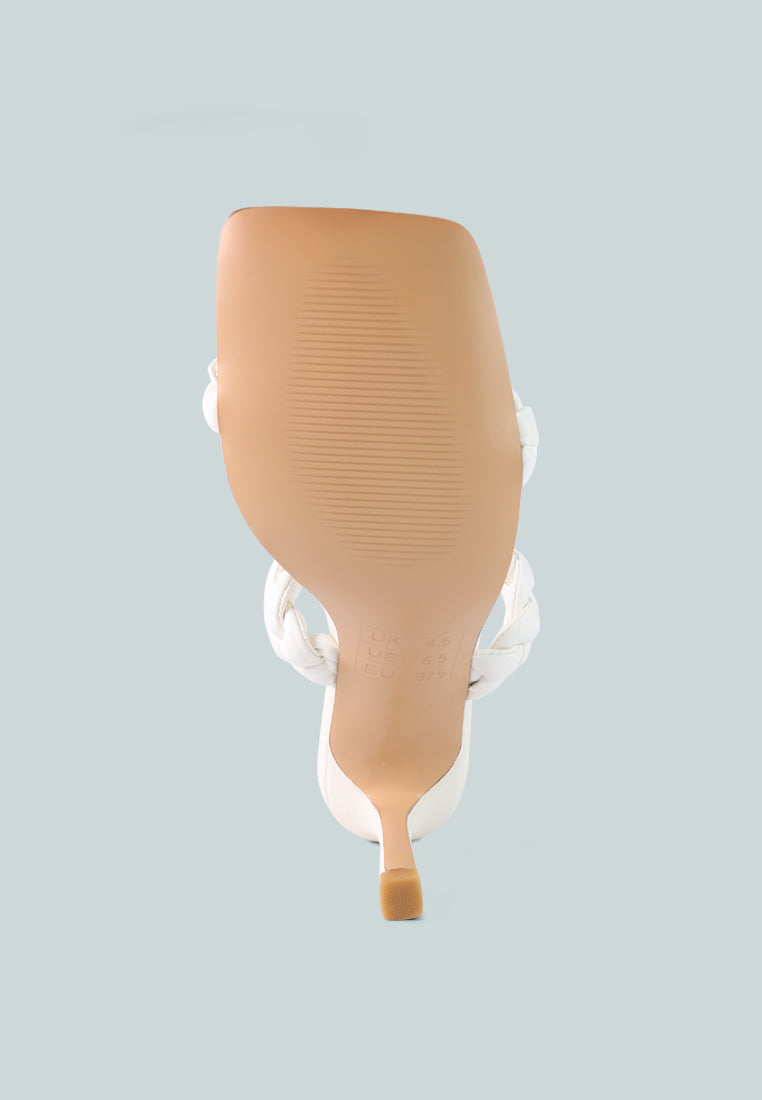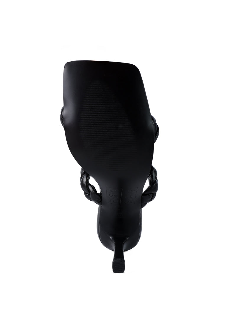 Three rich faux leather braided straps on comfortable mid-heel sandals , this pair of square-toe sandals are the trendy and comfortable choice this summer. Comes in delightful color options to choose from.