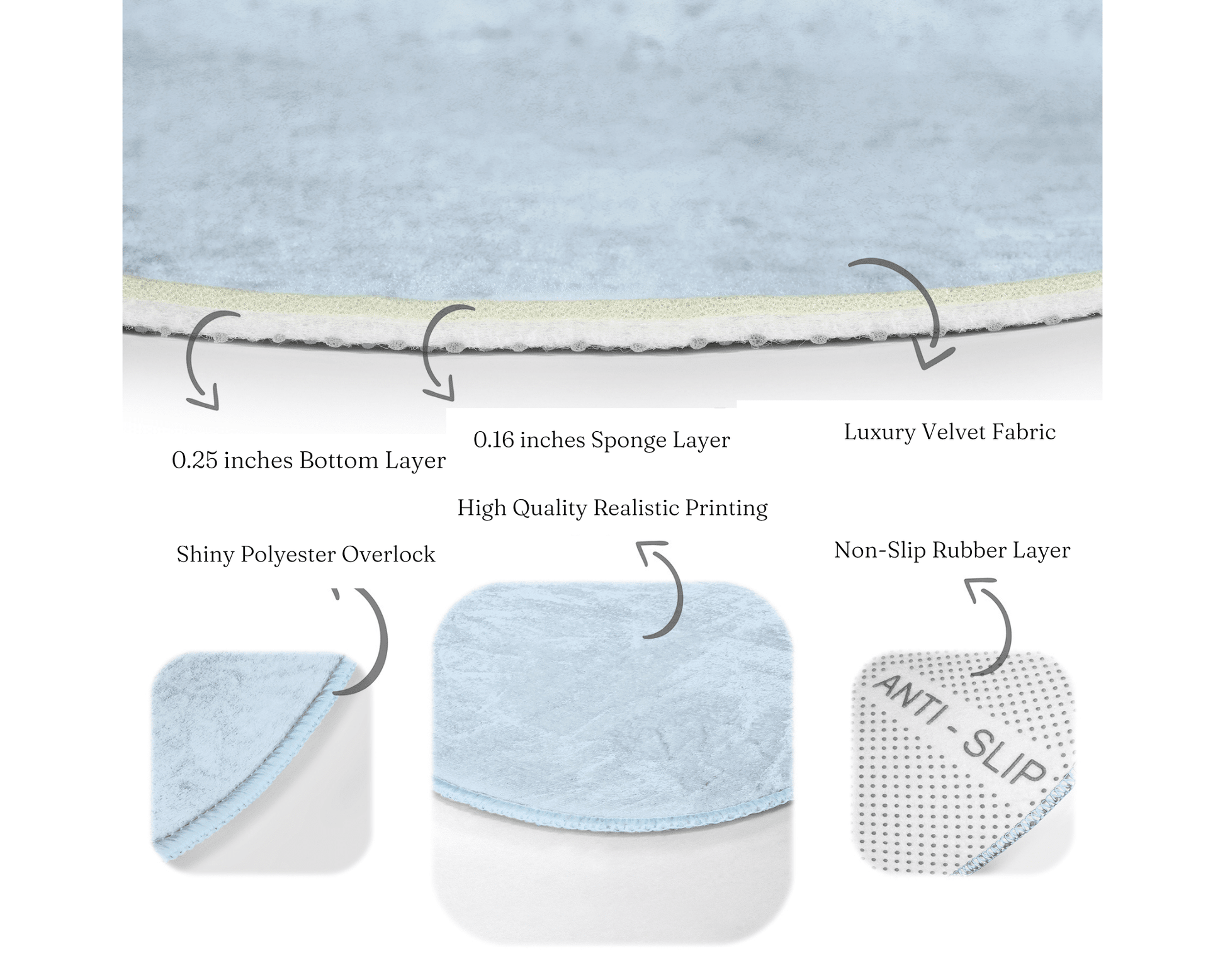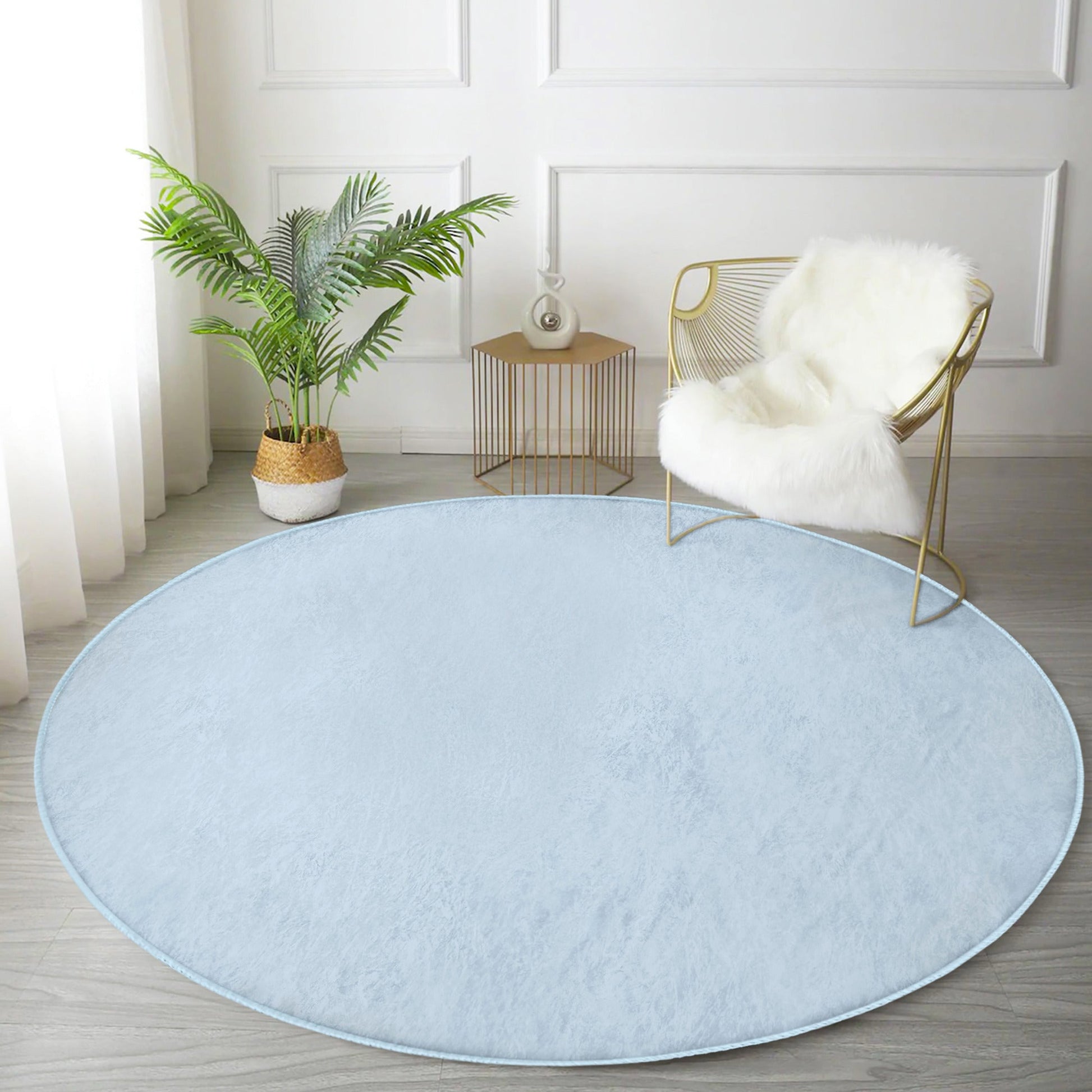 Blue Decorative Round Rug, Living Room Circle Carpet, Non Slip Washable Area Rug