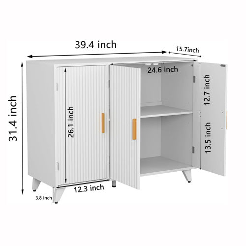 specification Product Information Product Code: W1705P179816 Product Type: General items Product Name: Ideboard buffet cabinet with wave texture, white decorative cabinet with door, modern bookcase for kitchen living room, entryway Origin: China Main Color: white Main materials: Particleboard Stuffing: Particleboard Product Style: American design, American tradition Use case: restaurant Product dimensions Assembly Length (in.): 39.37 Assembly Width (inches): 15.74 Assembly Height (in.): 31.49 Weight (lbs): 62.70 Package size Length (in.): 43.70 Width (inches): 19.68 Height (in.): 7.68 Weight (lbs): 71.88 Features: 【Unique Ripple Design】This buffet cabinet with storage highlights the white fluted textured body and brass legs, which are eye-catching but not overwhelming. 【Thickened Entrance Cabinet】This accent cabinet is made of high-quality thickened MDF, which is 2-3mm thicker than other cabinets. The fuselage has grooves on all sides of the body, making the cabinet more durable and less moth-free and damp. 【Create Your Own Cabinet】The modern buffet cabinet is perfect for your dining room or kitchen. It can also be used as an entrance or console cabinet in a hallway, or as a decorative storage cabinet in a bedroom or home office, and is also ideal as a bookcase in the living room. 【Worry-free after-sales】Comes with clear and detailed instructions and numbered parts, and the 2-door decorative cabinet can be easily cleaned with a damp rag. We are committed to providing the best products and services, if you have any questions, please feel free to contact us. description Product Details Overall Size: 39.37〞 x15.74〞 x31.49〞 Package Size: 43.7"x19.68"x7.68〞 Product weight 62.7 lbs Package weight 71.68 lbs Sideboard with wavy texture buffet cabinet, white decorative cabinet with doors, modern bookshelves suitable for Kitc Product Size: 39.37〞 x15.74〞 x31.49 〞 Package Size: 43.7"x19.68"x7.68" Product Weight: 62.7 lbs Package Weight includes: 71.68 lbs Ample storage space: This product provides ample storage space with a hollow storage tier. Materials and colors: The frame of this sideboard is made of particleboard with melamine stickers. Users can choose their favorite according to their personal preferences or home style. Features: The expected load capacity is 200 lbs The small and delicate gold doorknob is not only practical, but also serves as an accent. The door panel made of 15mm thick bamboo is cut into a wavy pattern by carving and milling technology, which is environmentally friendly and naturally soft. With clear textures and pastel colours, it pairs well with bedrooms, living rooms and dens. Built-in 3-angle laminate that is adjustable to remove and place bulky items when necessary. Built-in floor mats prevent scratching the floor. This sideboard comes with detailed instructions that can be installed step-by-step to help you get the assembly done as quickly as possible.