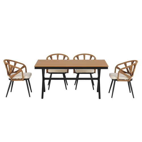 Contemporary Outdoor Set with PE Rattan Chairs and Plastic Wood