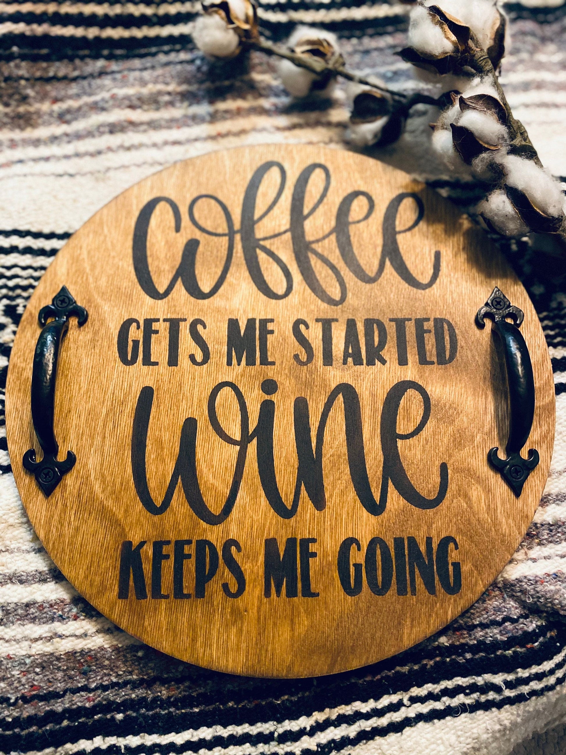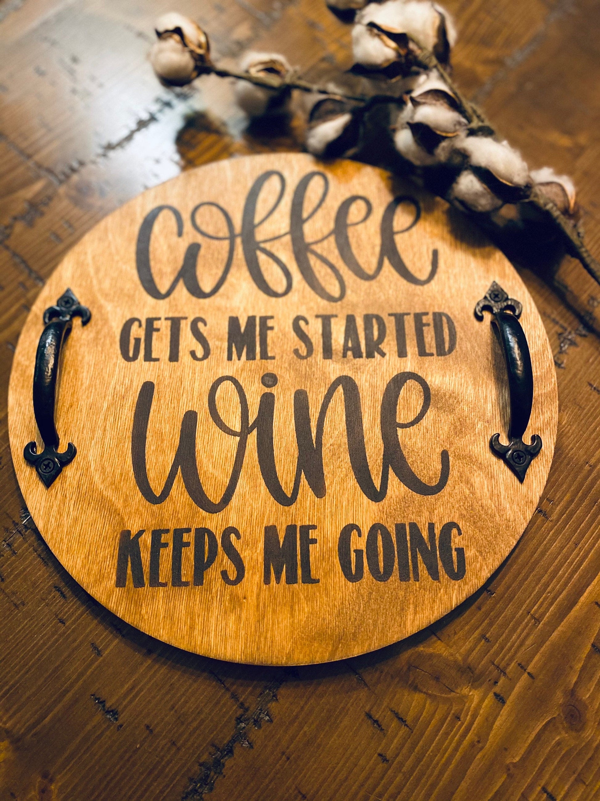 Coffee Gets Me Started Wine Keeps Me Going Serving Tray