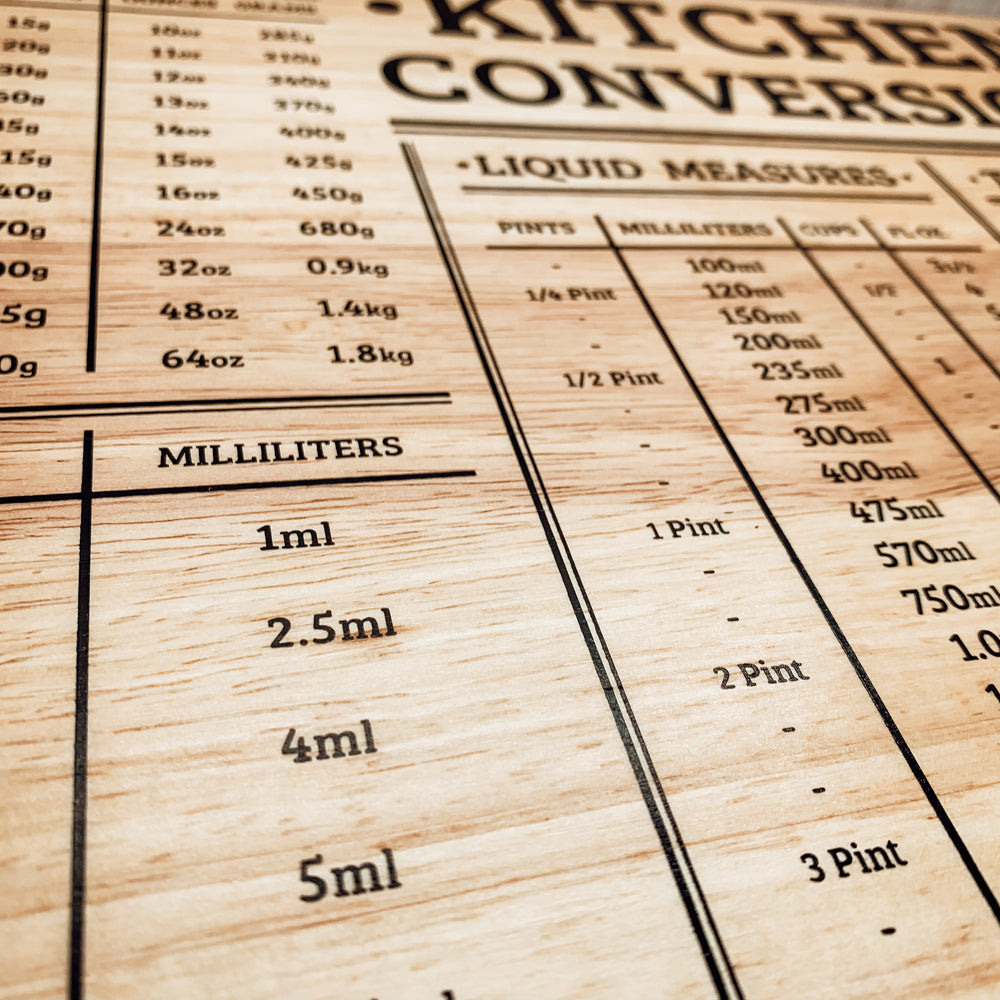 Use as decor & a measurement reference on one side and then flip it over, to the non text side and use it for a gorgeous cutting board, cheese platter, serving board, appetizer tray. Whatever you need!