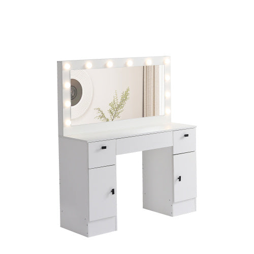 specification Product Information Product Code: W2156P143524 Product Type: General items Product Name: Dresser with illuminated mirror, dresser with 3 drawers and lockers, 3 colors, lighting mode, adjustable brightness, white Origin: China Main Color: Antique white Main materials: Particleboard Customization: yes * Customized service is available for this product. You can contact the seller for details. Product dimensions Assembly Length (in.): 46.00 Assembly Width (inches): 15.70 Assembly Height (in.): 53.10 Weight (lbs): 91.50 Package size: Outer package image Length (in.): 50.00 Width (inches): 28.00 Height (in.): 6.50 Weight (lbs): 97.00 Features: 3 color lighting modes with adjustable brightness: The dressing table has 12 LED lights, the light source can be adjusted to 3 colors (cool white, warm white or warm yellow), and the brightness of the light is adjustable, so you can get the effect you need at the touch of a switch! Sleek & Large Mirror Design: The white vanity and stylishly lit mirror are designed with your beauty needs in mind first, and the distance from the bottom of the drawer to the floor is 29.9 inches, which is sure to meet your daily sitting height. Large storage space: Are you still bothered by a messy dresser? Now this dressing table with 3 large metal sliding drawers and 2 large spaces with doors can provide you with a solution. The dressing table will keep your dressing and beauty environment organized and meet your daily makeup needs. Durable and stable structure: The dresser is made of EPA-grade particle board, which is smooth and flat, in addition, the structure is stable. Detailed Assembly Instructions: We provide detailed, step-by-step assembly instructions and numbered accessories, so just follow the steps and trust your hands, and you'll have an elegant dresser.