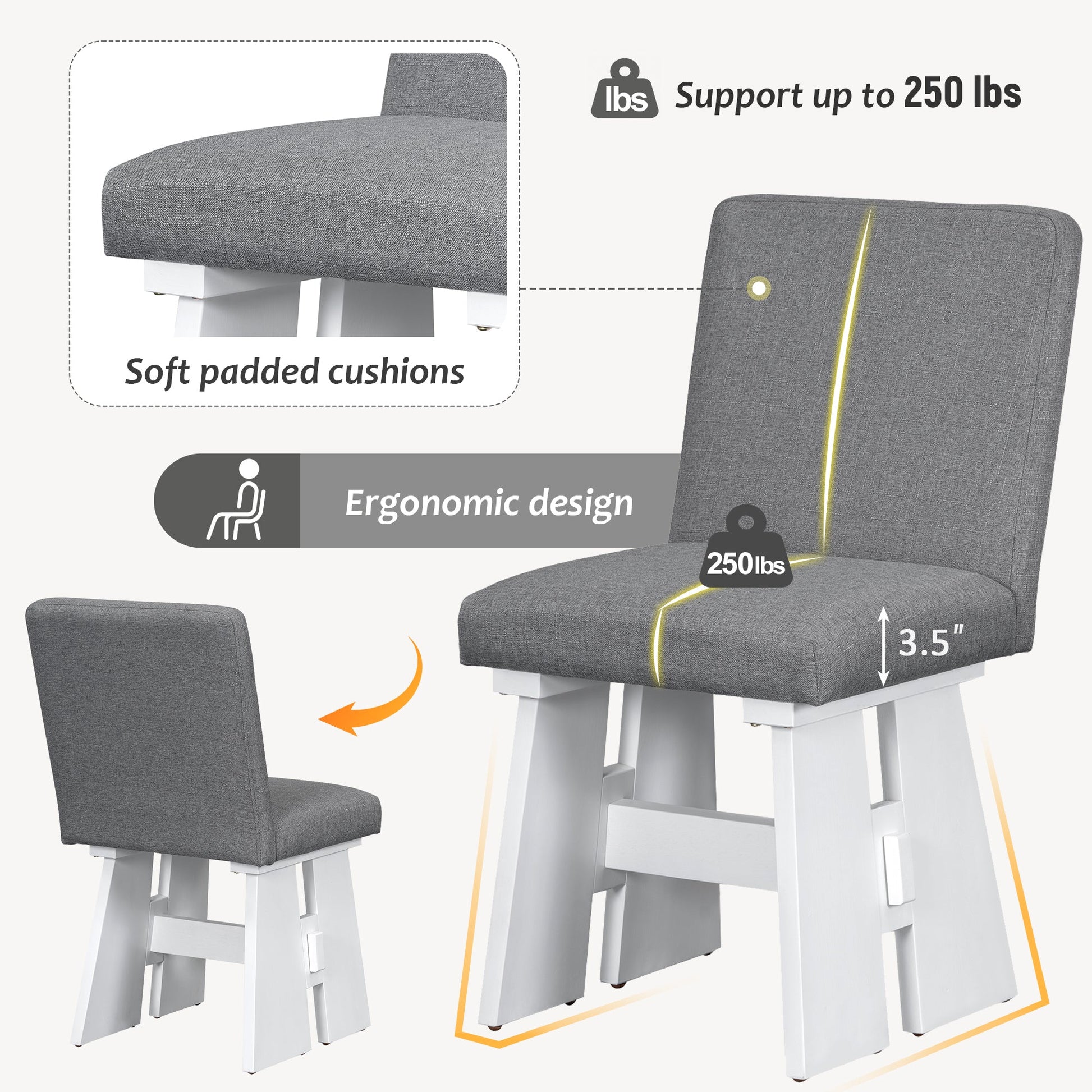 [Comfortable Upholstered Chairs] The 6 dining chairs in this set are upholstered for extra comfort, with soft, padded cushions that provide a cozy seating experience. Designed to support up to 250 lbs per chair, they offer strong and reliable durability. Whether you're hosting family dinners or casual gatherings, the chairs ensure guests can sit comfortably for long periods. Their ergonomic design further enhances comfort, providing both functionality and relaxation.