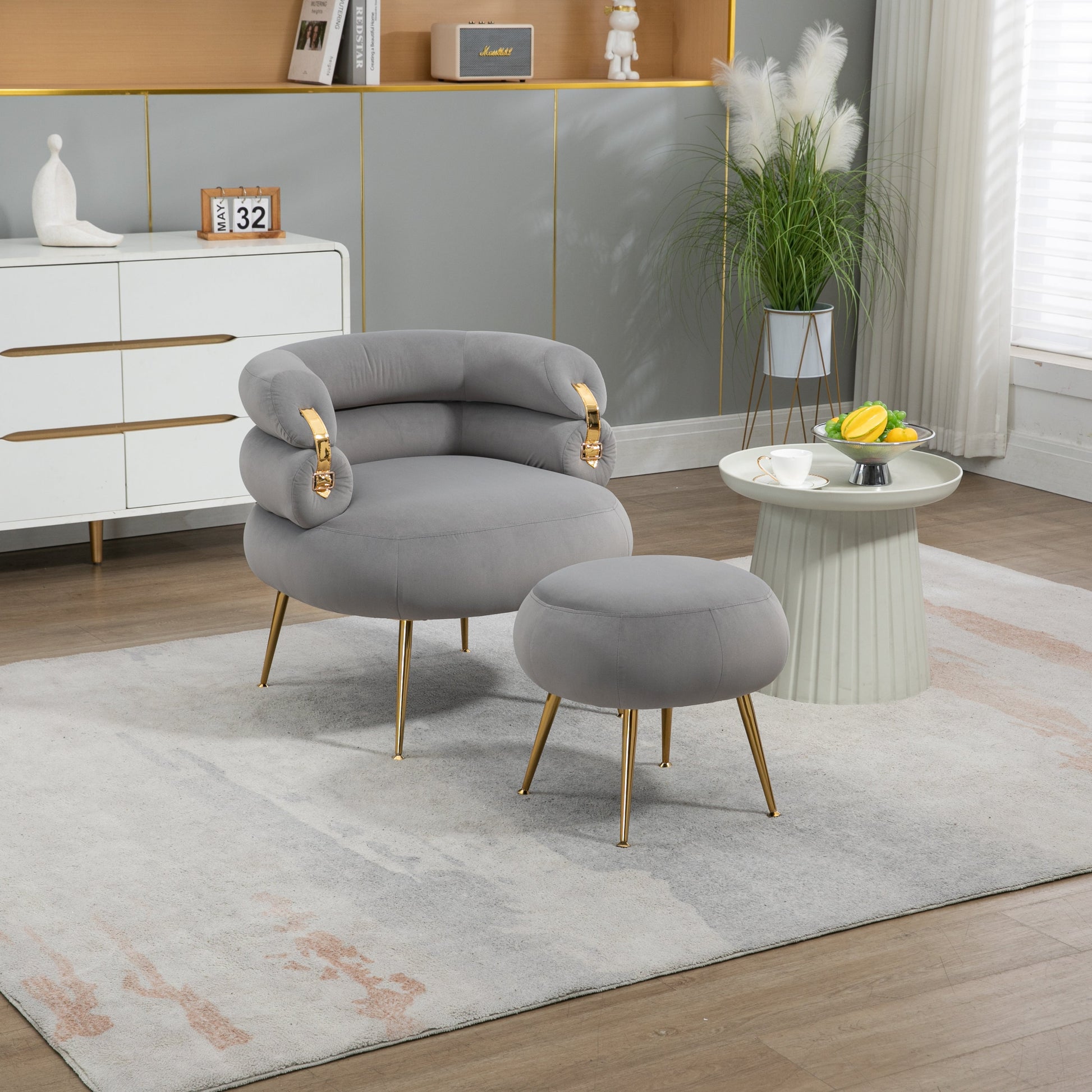 Upholstered Velvet Barrel Accent Chair with Ottoman,Accent Comfy