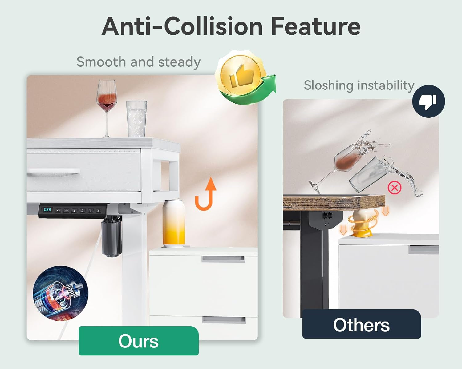 Electric Standing Desk with Drawers, 55 Inch Height Adjustable Desk