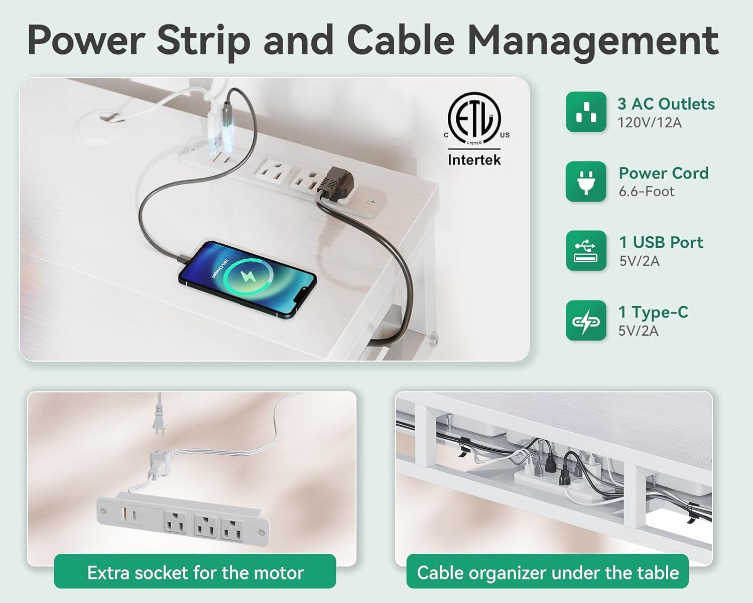 Built-in power outlet: Our desk includes 3 outlets & 1 USB & 1 Type-C ports to charge your devices.