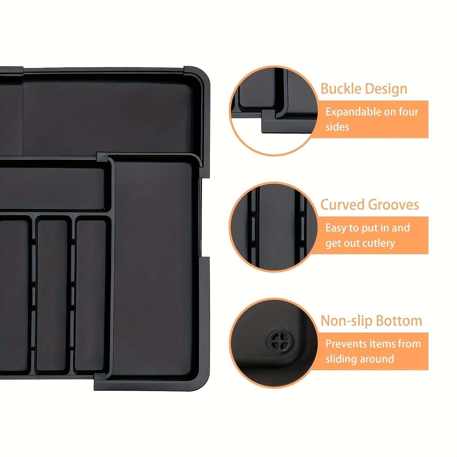 Why Buy This?Need a clutter-free kitchen drawer? The Expandable Silverware Organizer Tray is here to save the day! Its adjustable compartments give you the flexibility to store forks, knives, spoons, and other utensils in a neat and organized way. The insert mount ensures the tray stays secure, while the durable plastic material makes it a long-lasting addition to your kitchen. Perfect for saving space and keeping your kitchen essentials within reach, this organizer is the must-have solution for every home! 🥄