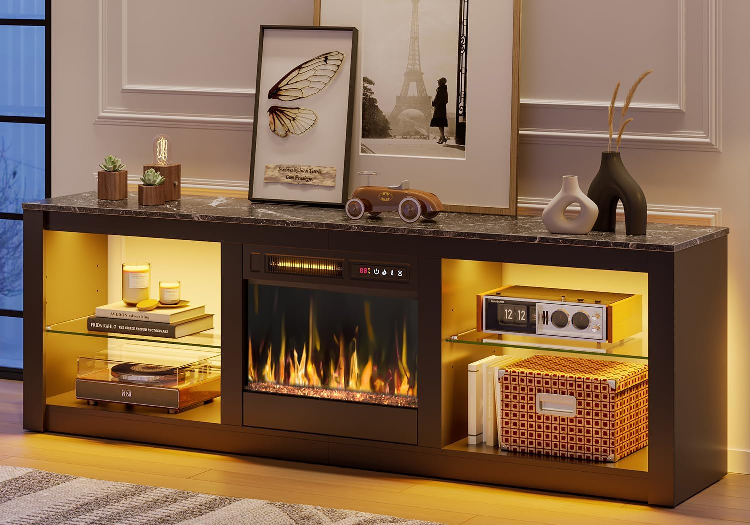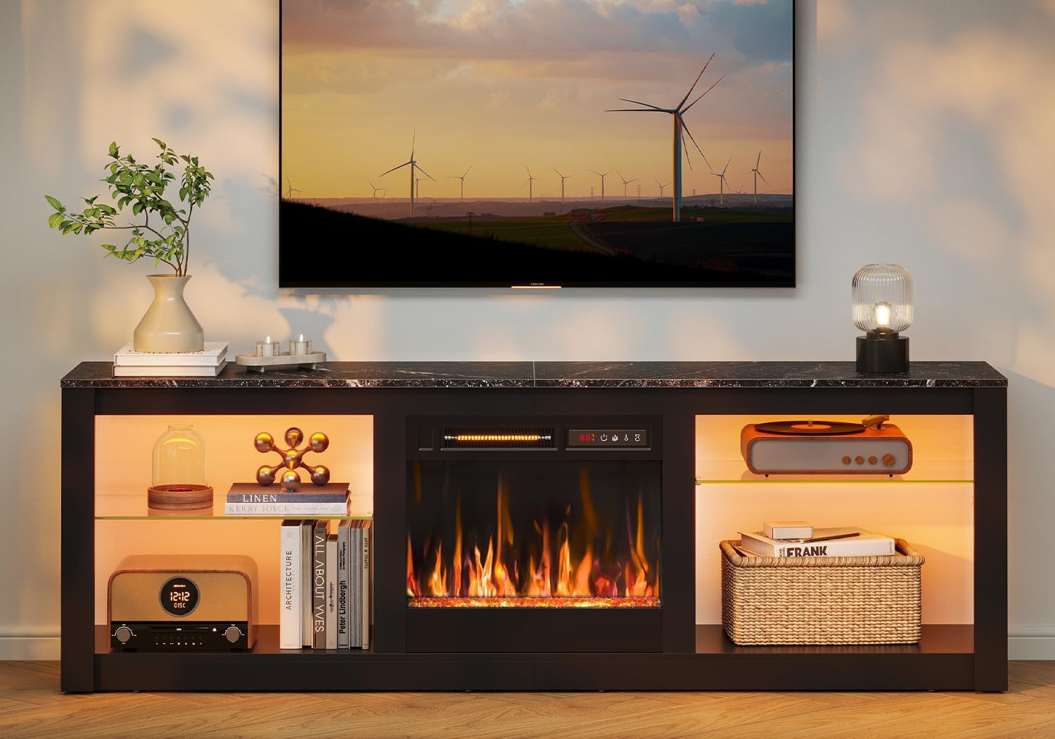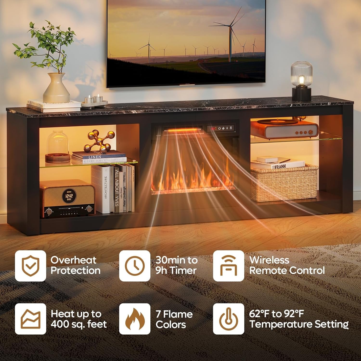 • Stylish Electric Fireplace: Enhance your living area with a beautifully designed electric fireplace offering 7 vibrant flame colors, creating a warm and inviting atmosphere.