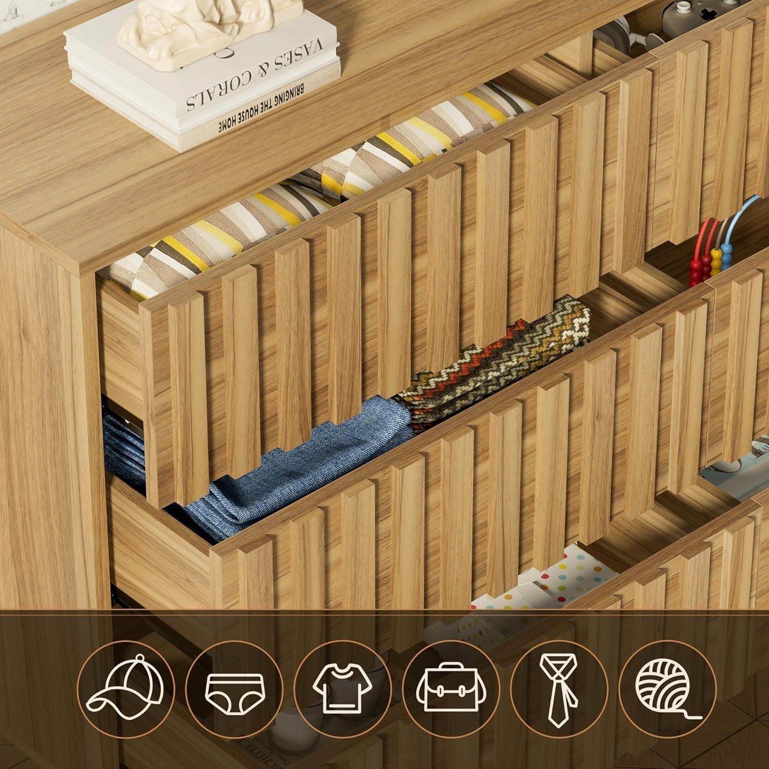 Decrease quantity for Fluted 6 Drawer Dresser with Metal Stand, Mid Century Modern