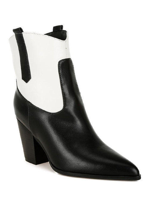 The dual tones definitely add a contrasting aesthetic which is eye-catching. The cowboy boots are a treat to the eyes, but also offer a relaxed walkability experience with the comfortable cushion insoles and stacked block heels. The pull tabs are convenient for an easy to wear experience.Type: BootsUpper Material: Faux LeatherOuter Sole: TPRClosed Pointed ToeStacked Block HeelPaneling DetailPull TabsComfortable Cushion InsolesHeel Height: 2.5 inchesSH5067