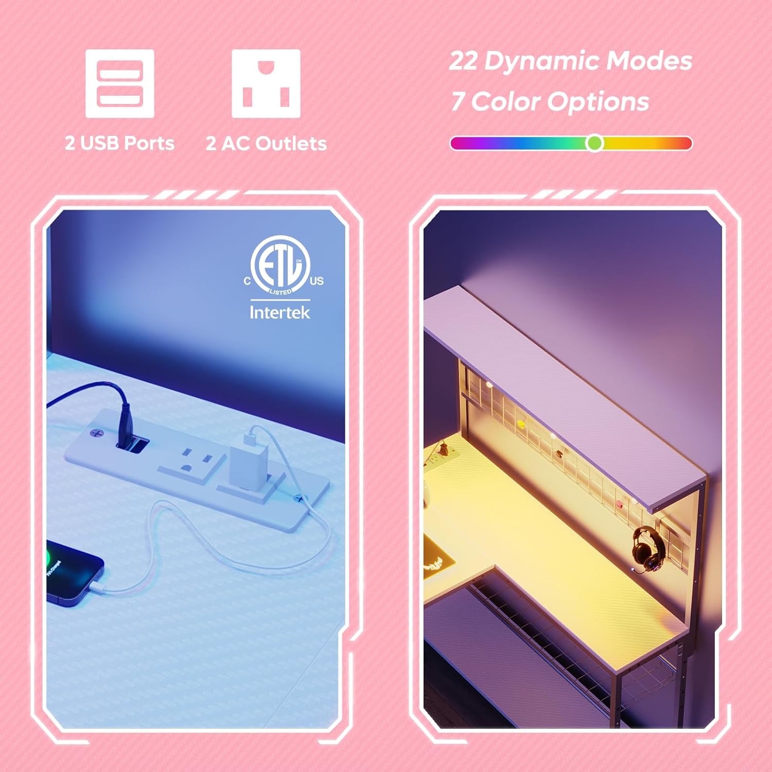 Transform your gaming experience with the Bestier L-shaped gaming desk equipped with LED lights and convenient outlets. This stylish and functional workstation offers a spacious design that caters to both gamers and home office users, ensuring maximum productivity and organization.