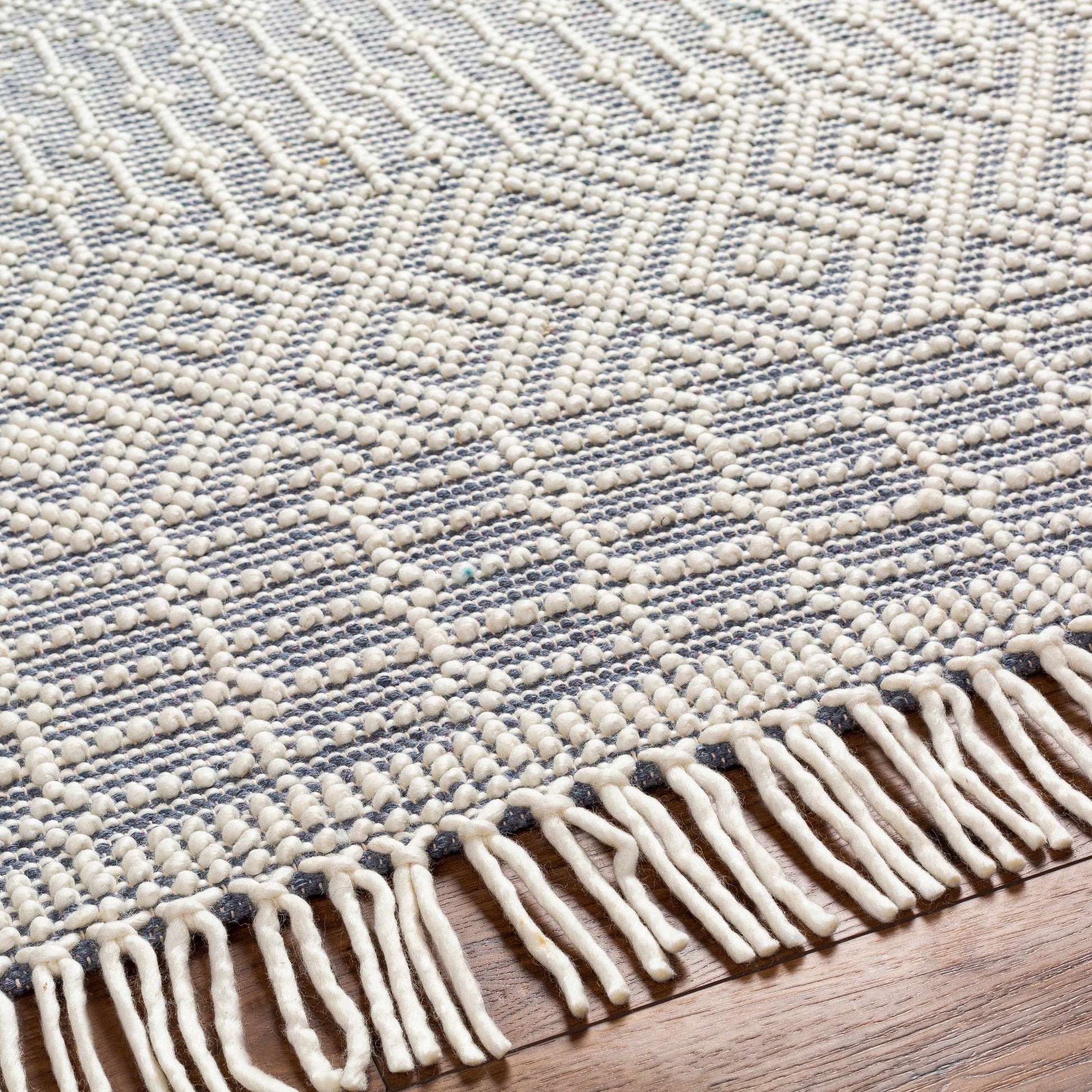 The Gina Area Rug features an Aztec Moroccan-inspired high-low design with fringed edges, blending boho, farmhouse, and Scandinavian aesthetics. Its geometric patterns and textured finish make it a versatile addition to any space, offering a stylish yet durable option for modern and eclectic homes.