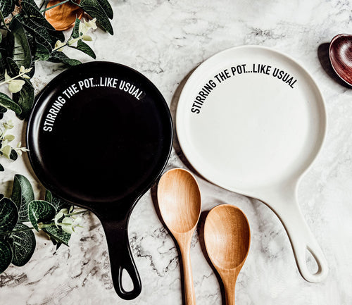 How many times are you looking, go to stir something and then don't want to put it down on your counter or stove in fear of making a mess of what you just cleaned or a bigger mess than what is already there (insert me raising my hand)?Not only does this solve the problem but it's genius and adds some fun with several sayings to choose from. Makes that perfect gift for someone who has everything or you don't know to shop for as well!Choose from several Rest styles
