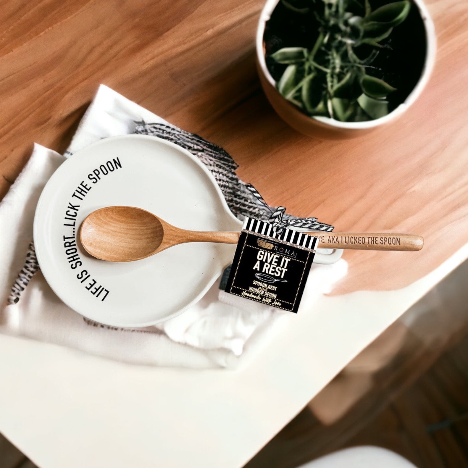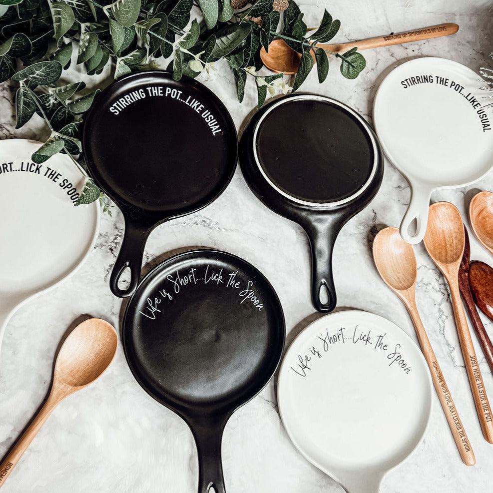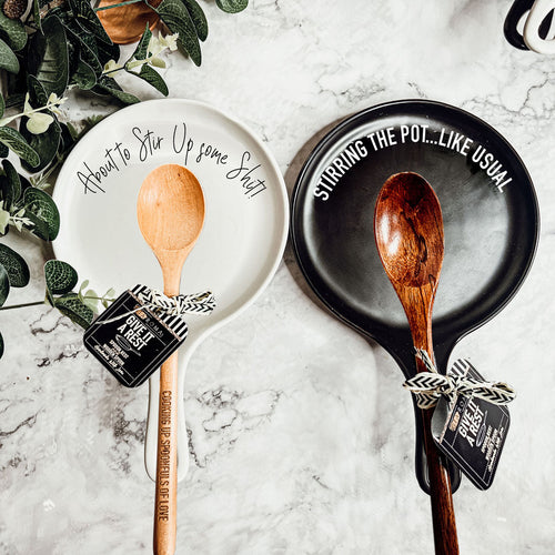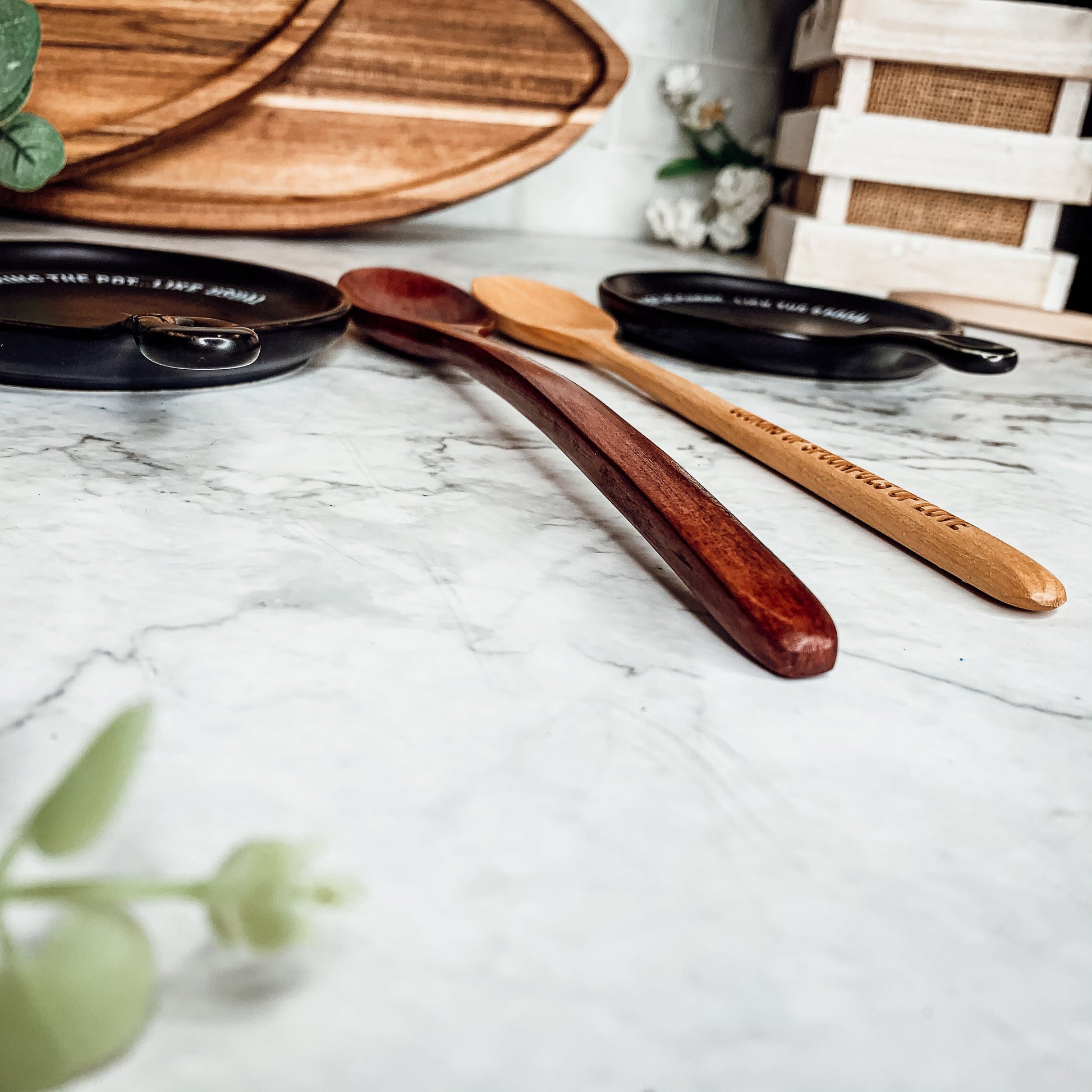 Choose your spoon rest color, spoon rest quote and wooden spoon style!
