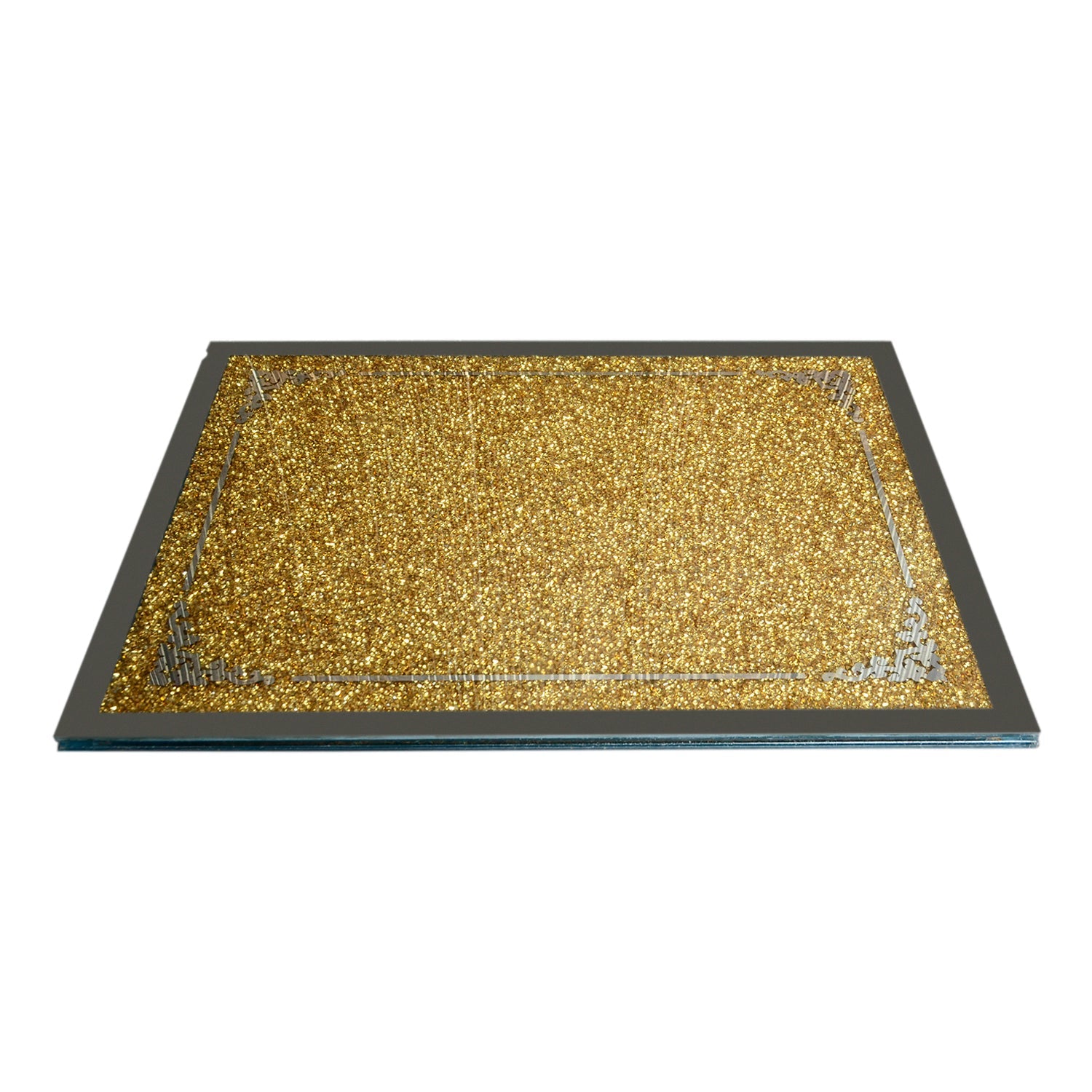 Exquisite glass chopping board in an elegant gift box. The crushed diamond glass chopping board has mirrored edging and 4 silicon non-slip pads. This beautiful accessory doubles as a functional piece and decorative accent bringing a modern touch to any home. Packaged in an elegant box, this is a perfect gift idea for your special loved one.