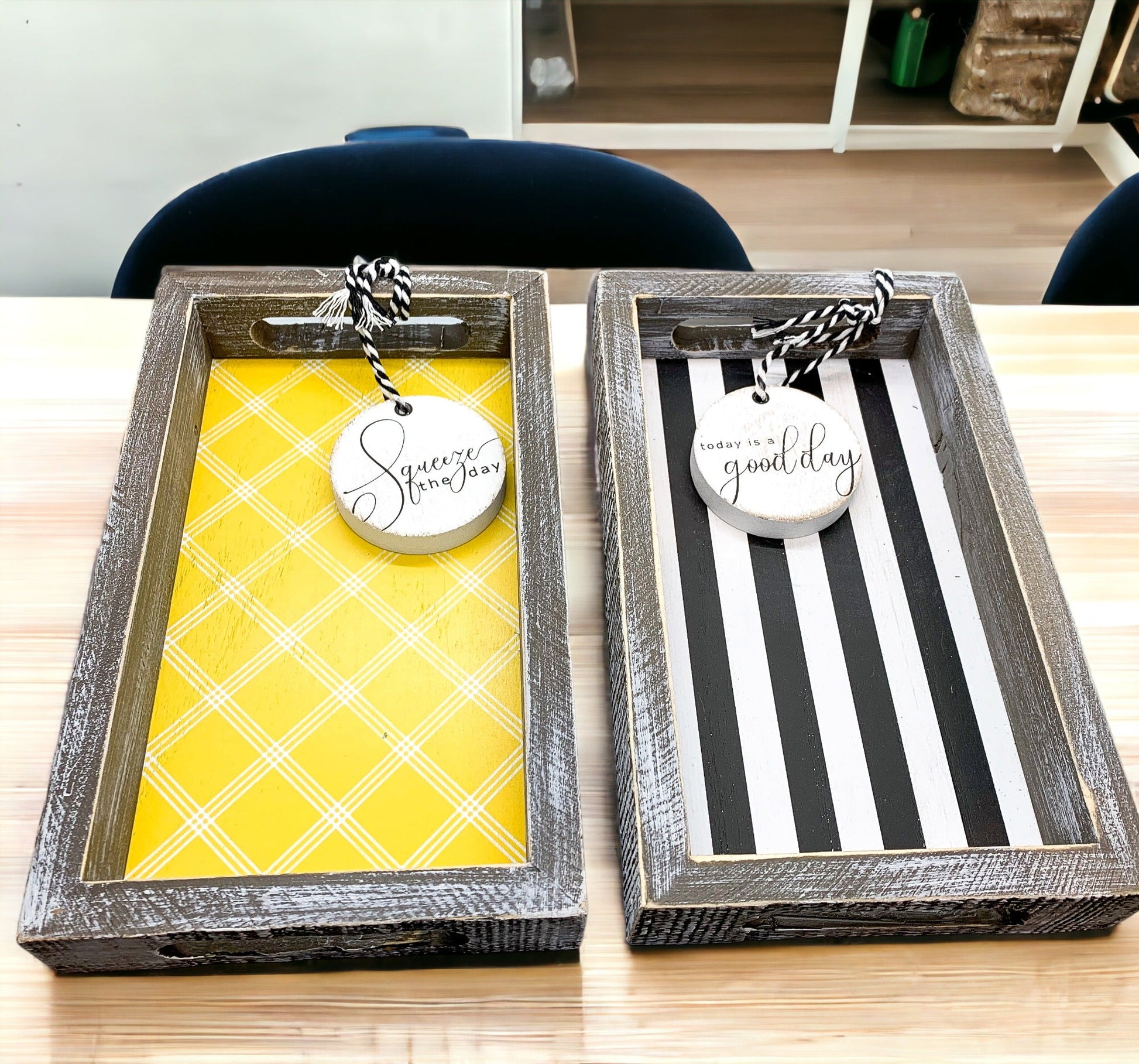 Using different colors including white and black, this wood tray would match well with your other everyday home decors