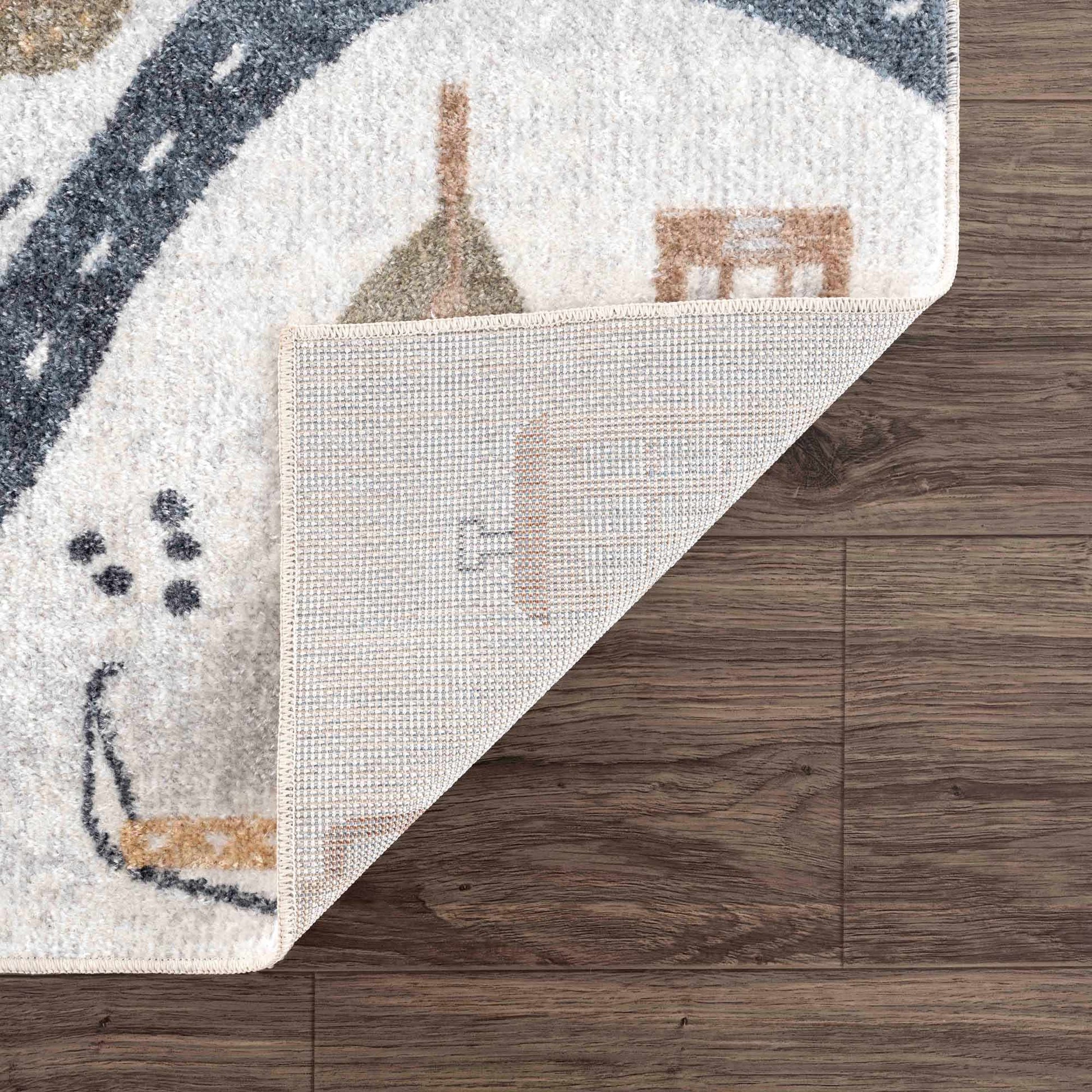 Perfect for a child's room, our washable kids' rug features a fun road and car pattern. Its low pile design is ideal for play, offering a blend of comfort and practicality while sparking imagination with its playful motif.