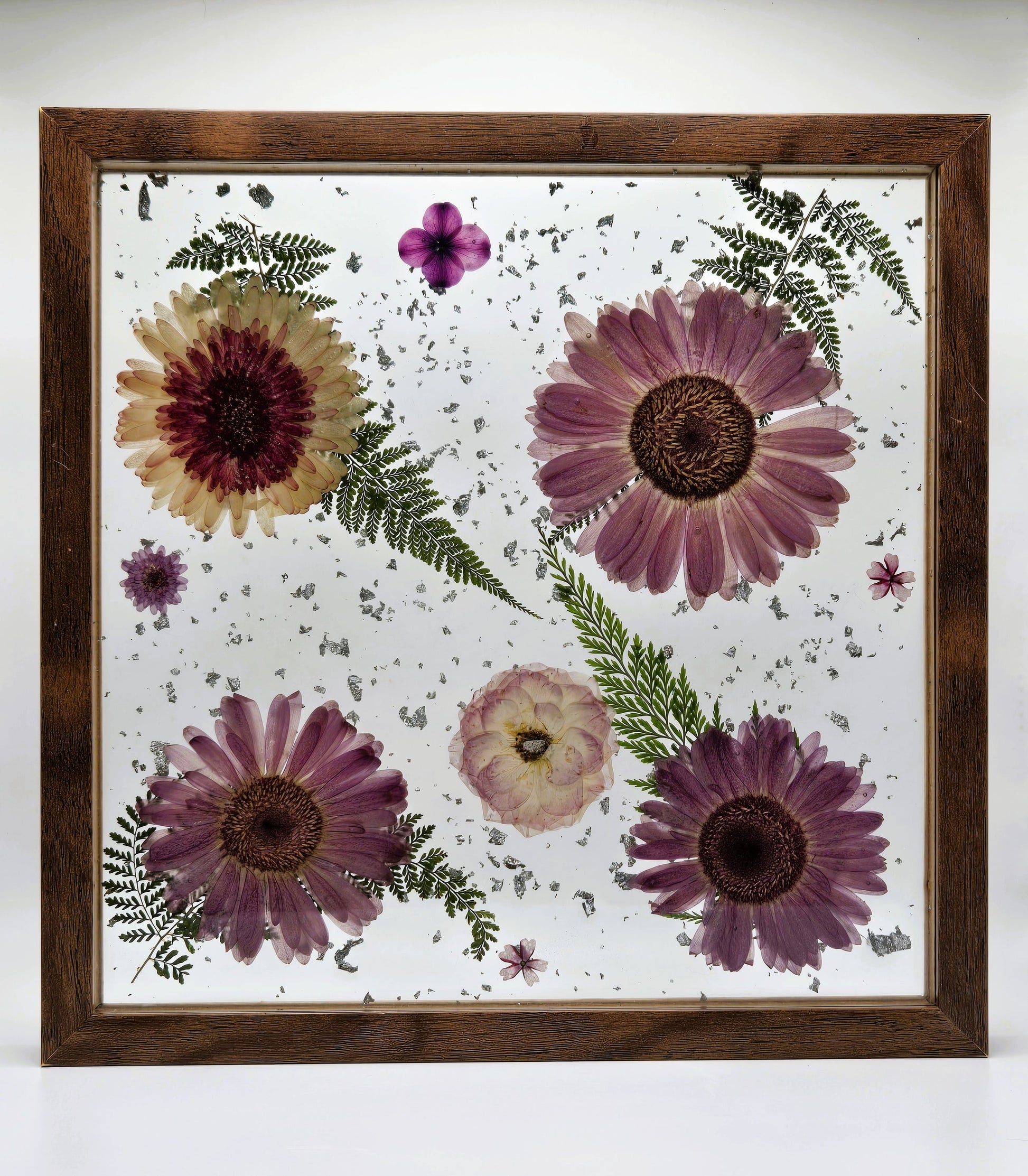 This Resin Pressed Flower Picture Frame is a stunning piece that captures the beauty of nature. The 12 x 12 frame showcases a delicate arrangement of pressed flowers, meticulously preserved under a layer of glossy resin. The flowers' vibrant colors and intricate details are a sight to behold, adding a touch of elegance to any room. The resin gives the flowers a glossy finish, making them appear as if they were freshly picked and frozen in time. This unique combination of nature and art is truly a sight to behold, a perfect addition to your home decor.