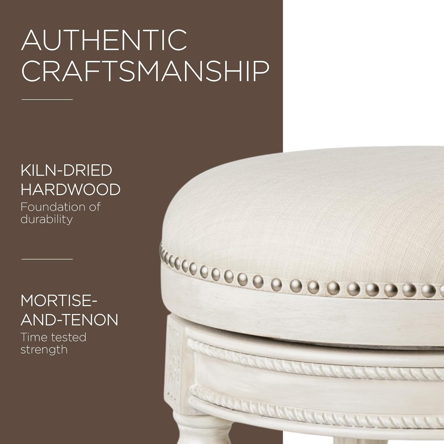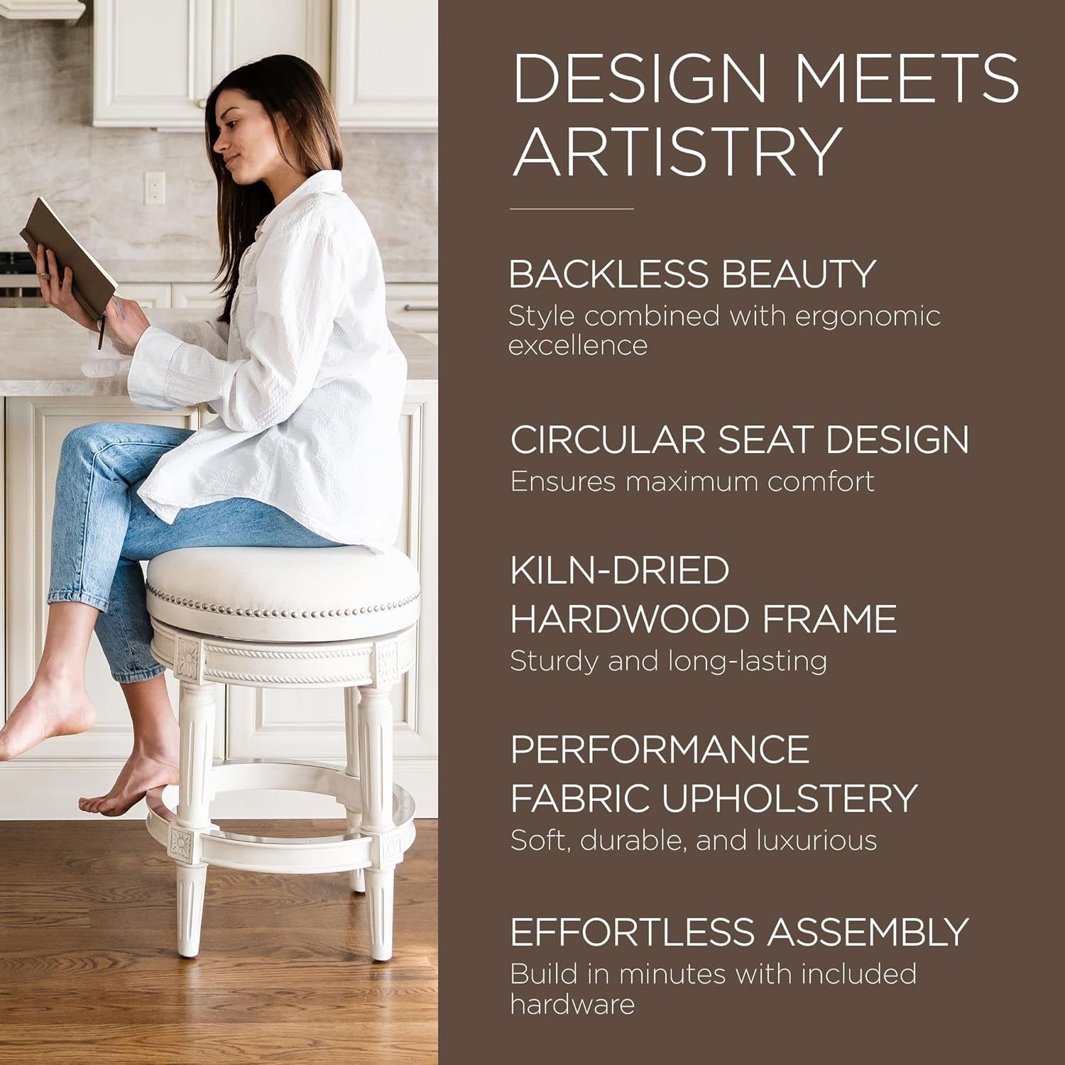 • Effortless Elegance: Featuring a traditional silhouette, these stunning backless stools are designed with impeccable attention to detail, including nailhead trim and a beautifully crafted wood base.