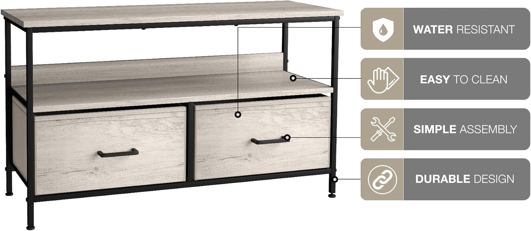TV Stand Dresser with 2 Drawers - Television Riser Chest with Storage