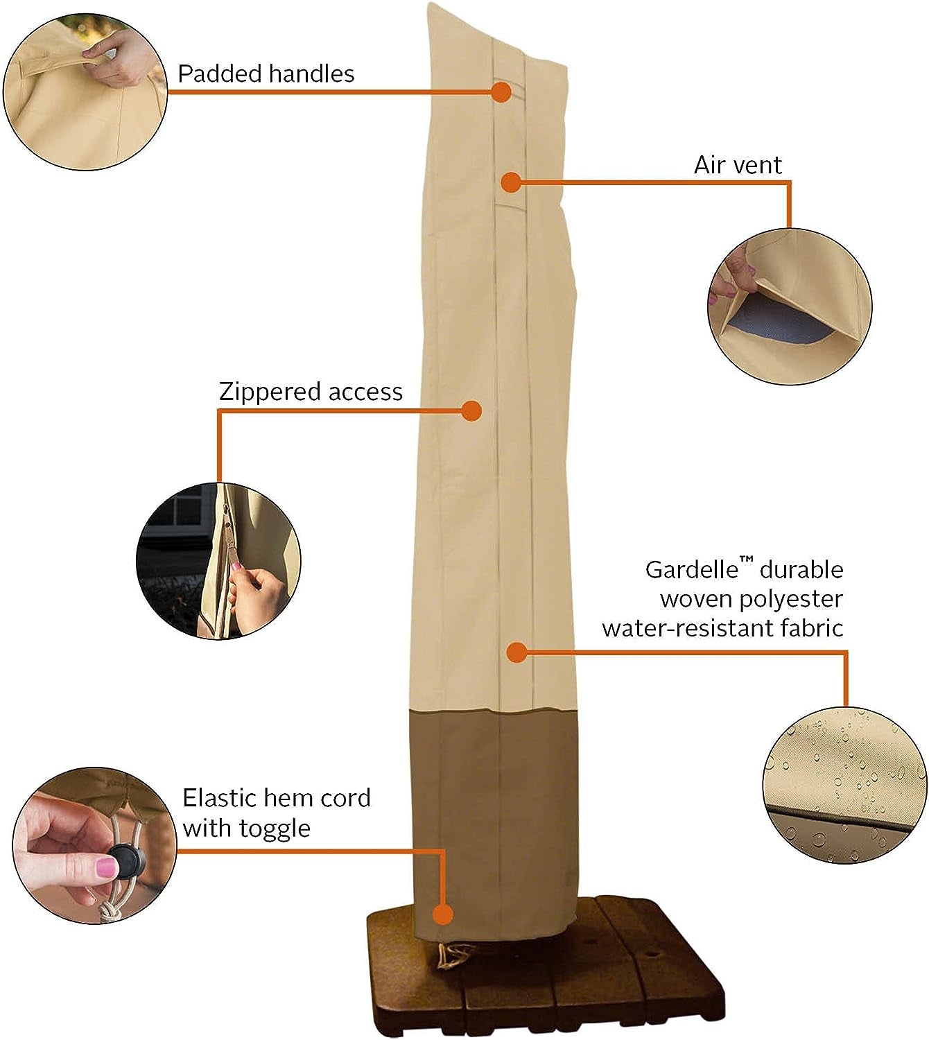 This premium waterproof offset umbrella cover is designed to provide ultimate protection for your patio umbrella. Made from 100% woven polyester with a durable laminated polyvinyl chloride backing, it ensures your umbrella remains safe from the elements and maintains its pristine condition.