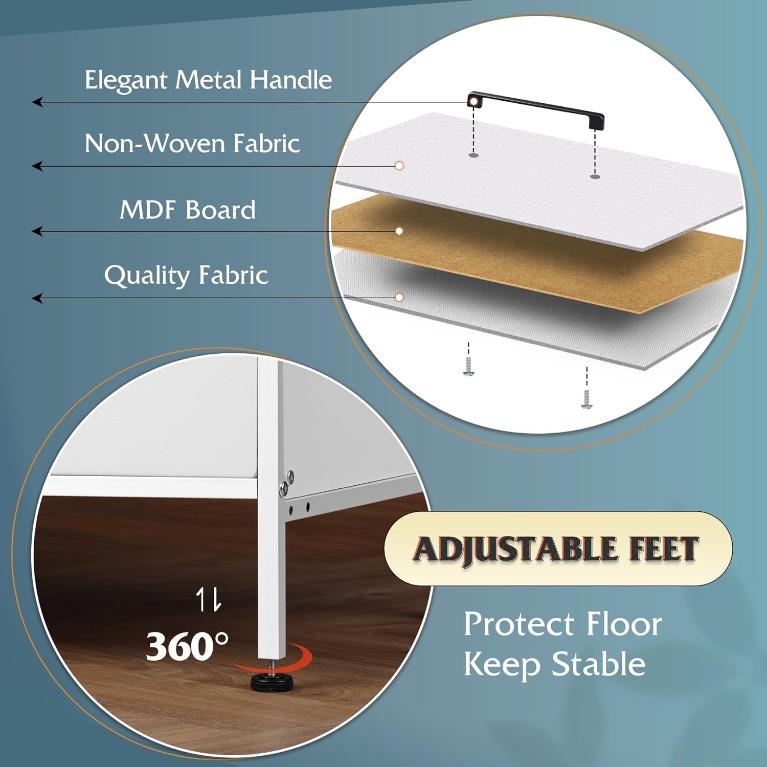 š šššššš ššššš:The Chest of Drawers features easy-to-pull arch handles, storage drawers made of high-quality non-woven fabric, and adjustable feet that protect floor from scratches.